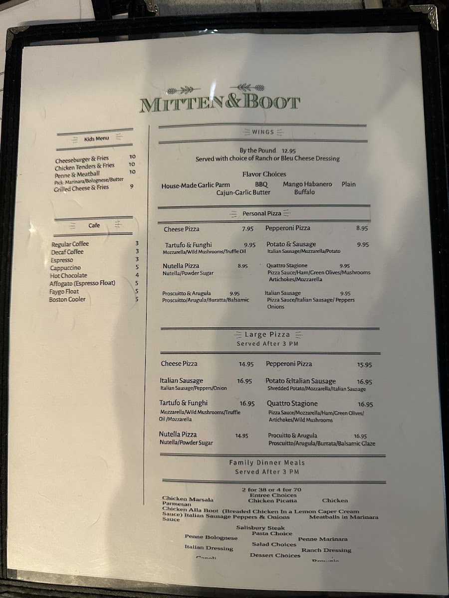The inviting atmosphere is perfect for families, couples, and solo diners alike. Mitten & Boot isn't just about the food; it's about creating connections. The patience and kindness of the staff lend a warm welcome, making everyone feel at home, regardless of how young or energetic your dining companions might be.